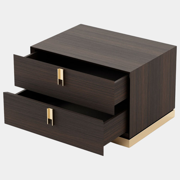 Touched D Curved Gloss Canaletto & Brass 2 Drawer Nightstand