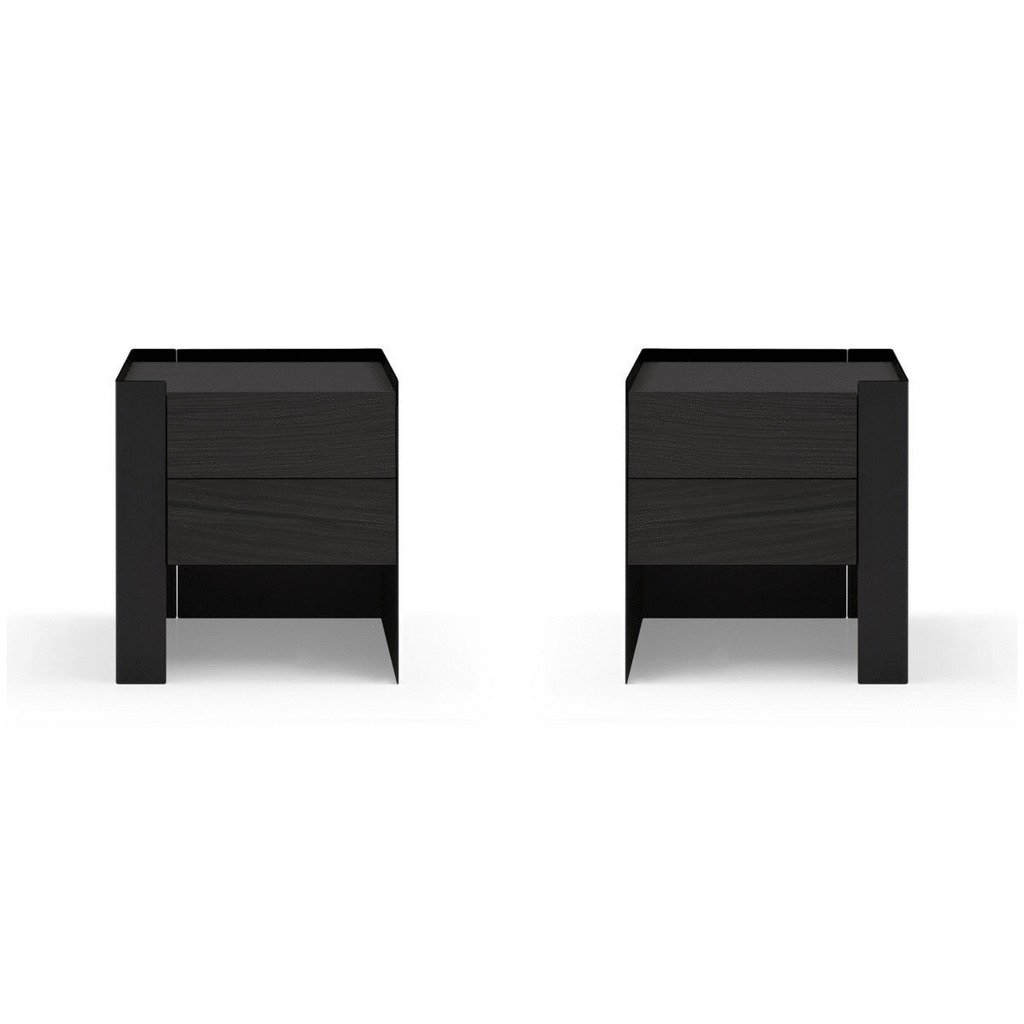 The Tunica Bedside Pair is the epitome of sleek and contemporary design. Their left and right facing configuration adds a unique twist, making them a standout choice for modern interiors. The black on black features, from the finish to the hardware, imbue these nightstands with a trendy and bold aesthetic. Their chic and sophisticated appeal is undeniable, effortlessly elevating any bedroom's decor. The Tunica Bedside Pair isn't just functional; it's a statement piece that embodies modernity and sophistication, adding a touch of bold style to your personal space.