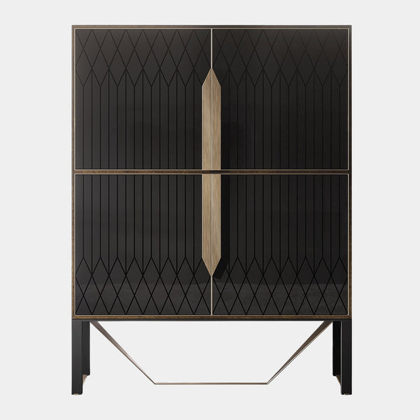 Hive Black Lacquer & Golden Brass Luxury Bar Cabinet