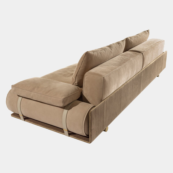Visionnaire Oberon: Luxurious modern sofa in opulent design, featuring sculpted curves, plush comfort, and customisable metal accents.